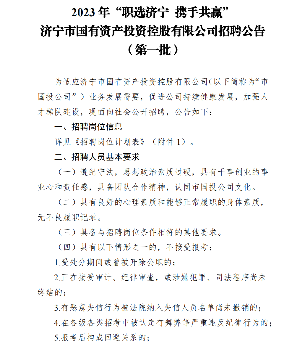 济宁市国有资产投资控股有限公司2023年招聘公告